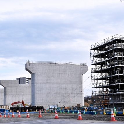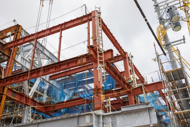 私たちは、仮設足場工事、プレキャストコンクリート取付工事、鉄骨建方工事を中心に行っています。